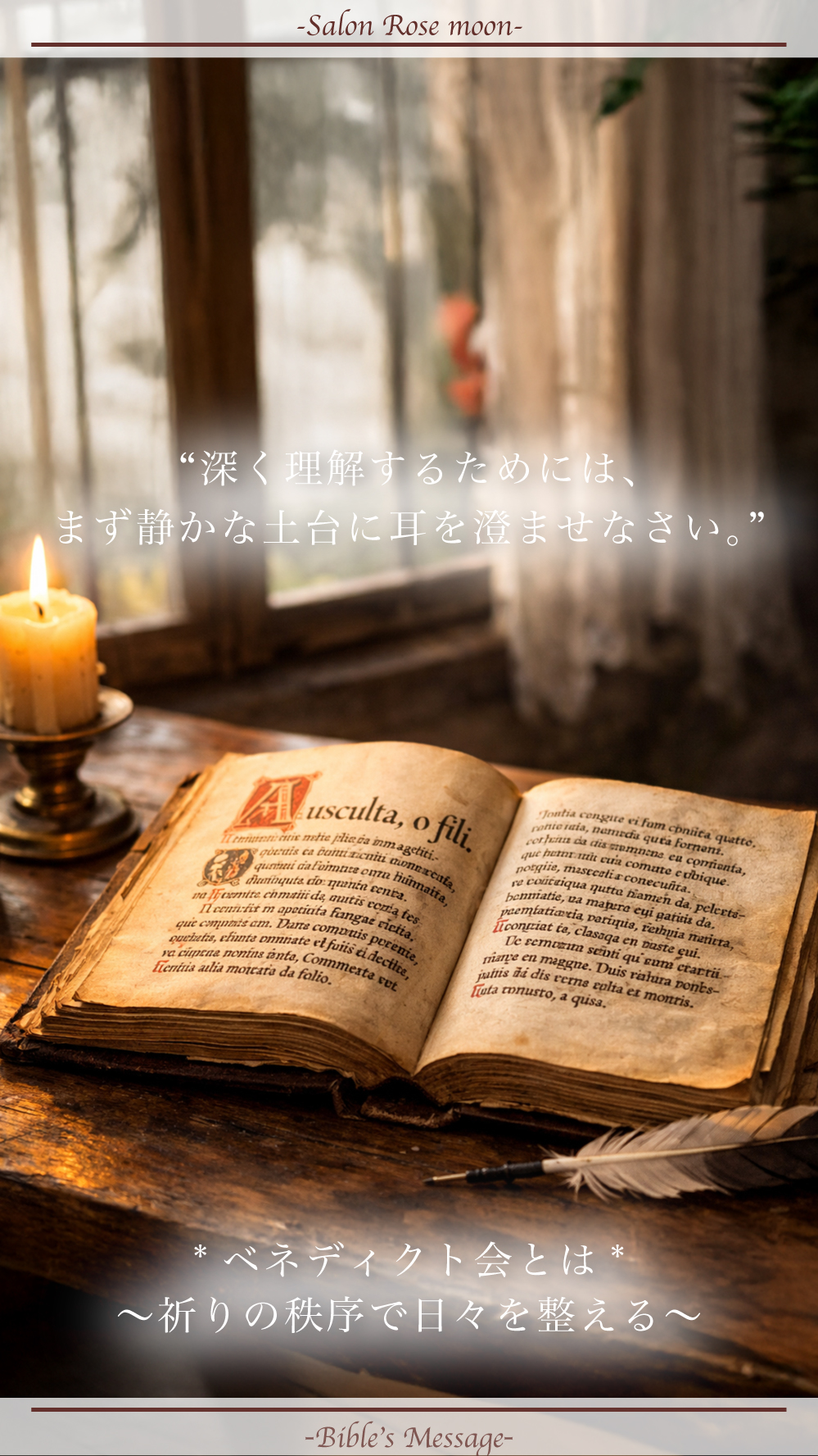 それは修道院のための規定集であると同時に、祈りと日々の務めを結び合わせながら、心と生活を整えていくための“道のしるべ”でもあります。